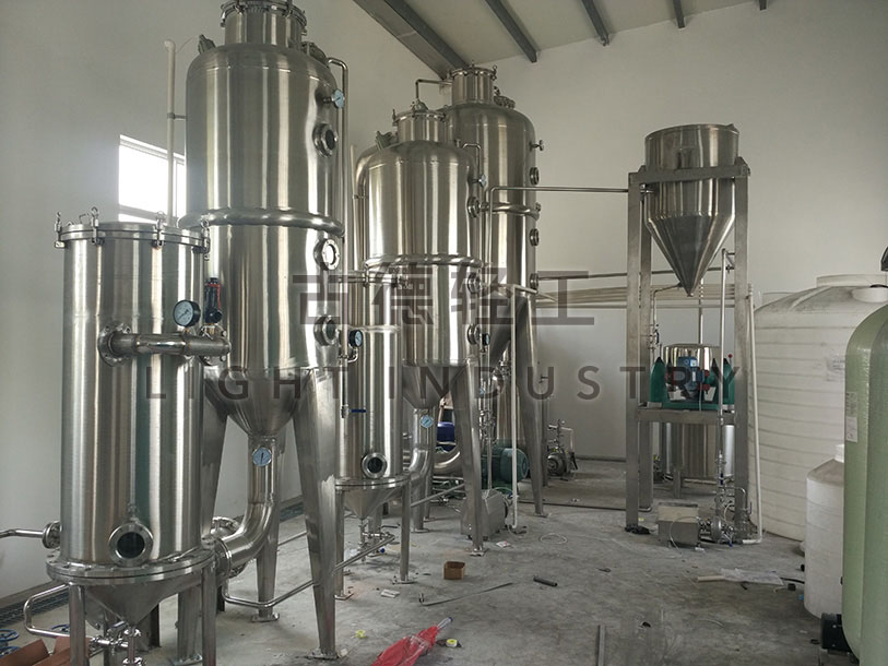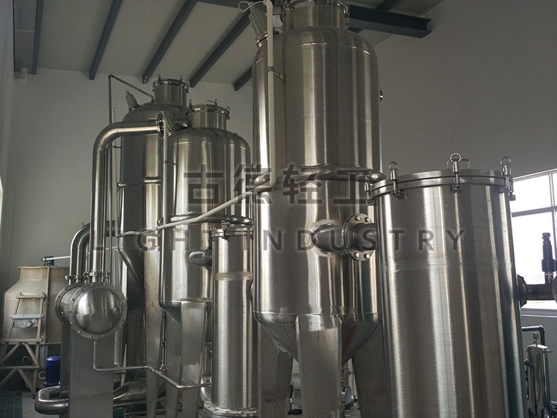 組成結構:各效蒸發器、各效分離器、冷凝器、循環(huán)泵、效間泵、真空及排水係統、操作(zuò)平台、電器儀(yí)表控製櫃及閥門(mén)、管路等(děng)係統組成。
